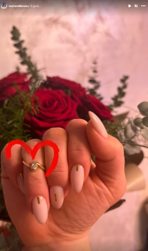 Lubiana przez wielu widzów bohaterka "Ślubu od pierwszego wejrzenia" po wielu miesiącach przerwy w publikowaniu na Instagramie wróciła. Co zamieściła w sieci? Na InstaStories pokazała zdjęcie, na którym widać bukiet czerwonych róż. Jednak na pierwszym planie widzimy dłoń i złoty pierścionek na palcu serdecznym. Jedynym "komentarzem" do ujęcia jest graficzne serduszko, które pojawia się wokół biżuterii. Czy to oznacza, że bohaterka 8. edycji eksperymentu znalazła wymarzonego partnera i miłość? Czy jest szczęśliwie zakochana? Czy zdjęcie to pamiątka z zaręczyn? Póki co obserwatorzy nie uzyskali odpowiedzi na te pytania. Czas pokaże, czy Marta zdradzi w sieci coś więcej, czy jej życie prywatne pozostanie tajemnicą.