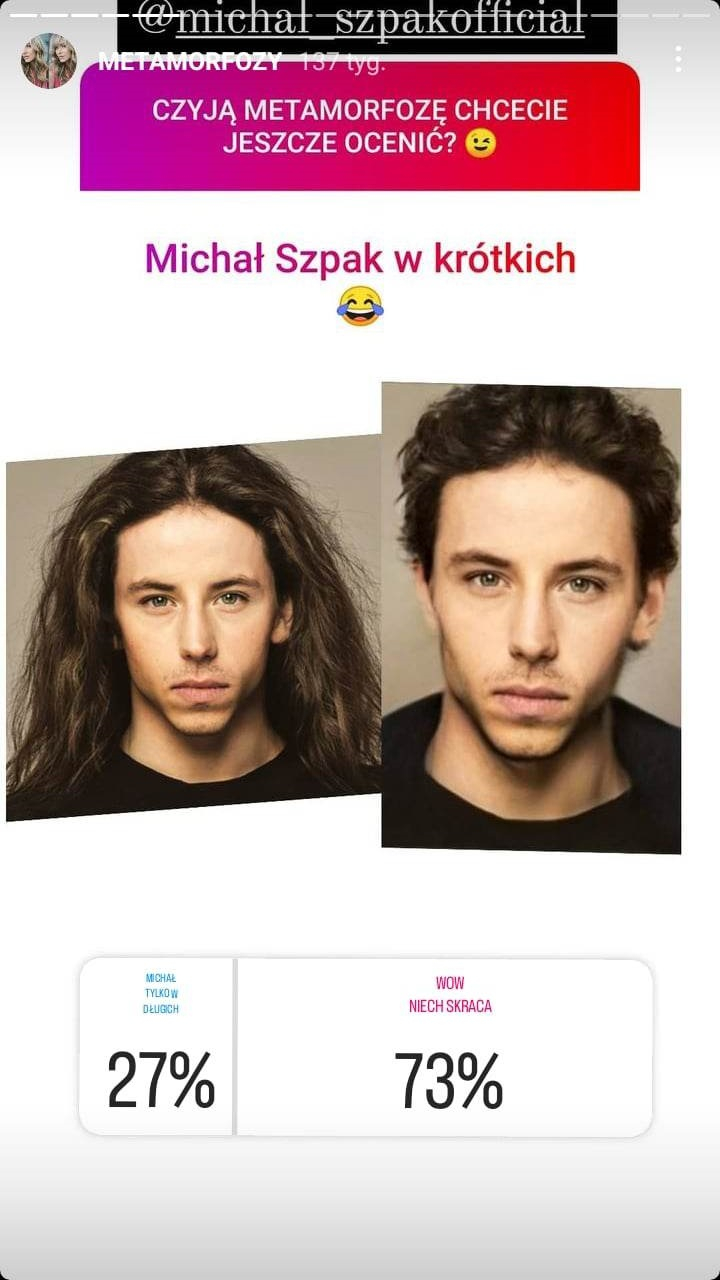 Opcję „Michał tylko w długich” wybrało 27% uczestników sondy. Dodajmy, że Szpak sam jakiś czas temu chwalił się w sieci zdjęciem wykonanym w czasach, gdy rzeczywiście był krótko obcięty. Zobaczcie sami.