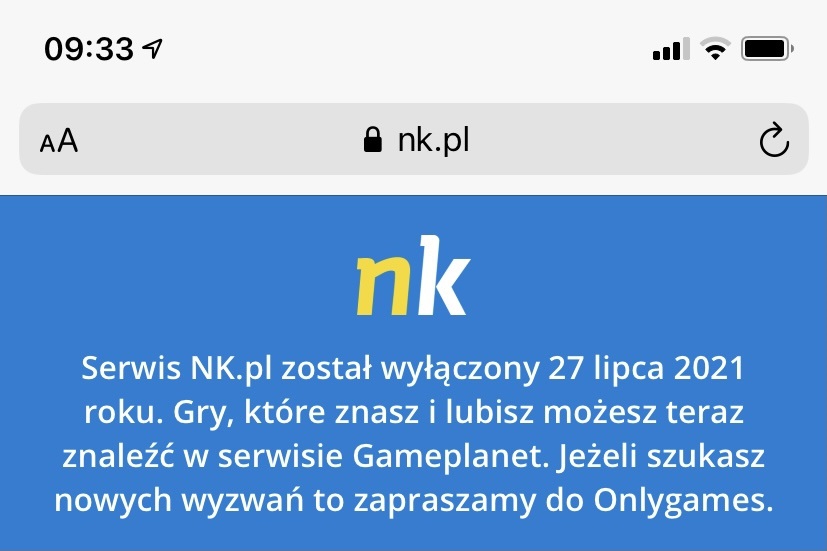 Serwis NK.pl został wyłączony 27 lipca 2021 roku – czytamy w witrynie.