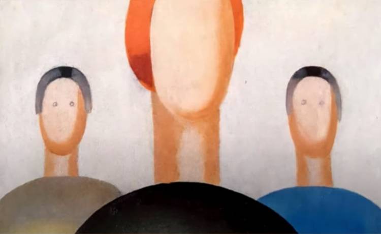Strażnik rzekomo wyjął długopis i postanowił dorysować oczy dwóm z trzech postaci bez twarzy, ponieważ był „znudzony”. Nie wiadomo dlaczego trzecią pozostawił w stanie nienaruszonym – być może była to jego wizja artystyczna. Na dodatkowe elementy na płótnie uwagę zwróciło dwóch zwiedzających wystawę, którzy zgłosili incydent pracownikom galerii. Eksperci utrzymują, że atrament długopisu przeniknął przez farbę, ale na szczęście został nałożony bez silnego nacisku, dzięki czemu obraz można przywrócić do jego pierwotnej postaci.