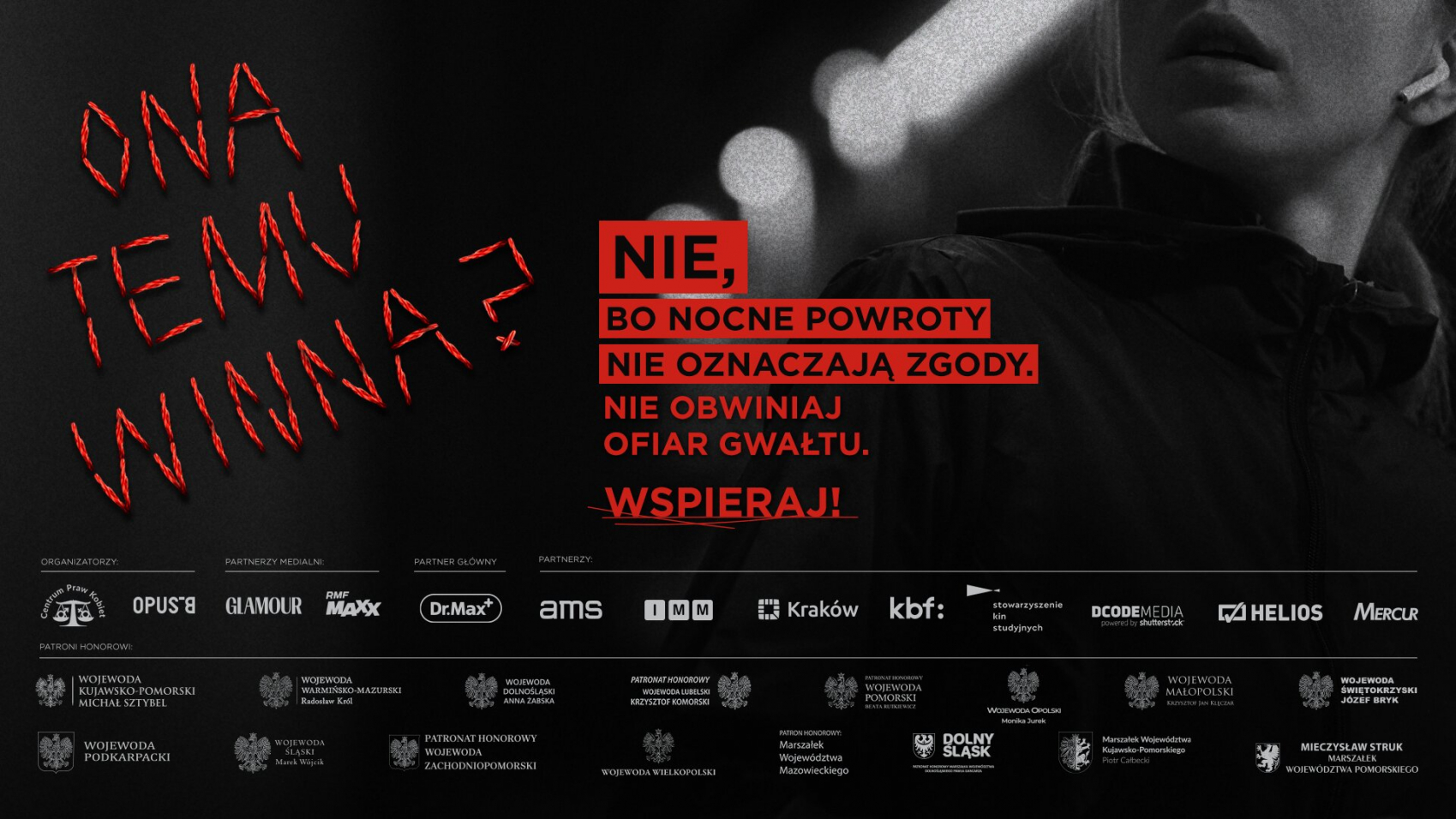 Motywem przewodnim kampanii jest parafraza znanej przyśpiewki weselnej „Ona temu winna…”. Pierwsze zdanie zostało zestawione z różnymi stereotypami dotyczącymi kobiet, które pały ofiarami przemocy seksualnej. Przykładowo „ona temu winna, biegać nocą nie powinna” czy „ona temu winna, przecież bronić się powinna”. – Takie zestawienie ma na celu pokazanie, jak typowe sytuacje są wykorzystywane do przerzucania odpowiedzialności na kobietę doświadczającą przemocy przy równoczesnym usprawiedliwianiu sprawców. Z kolei użycie bardzo dobrze znanej melodii i sparafrazowanie jej słów pomoże naszym komunikatom zwrócić uwagę odbiorców i lepiej zapaść w pamięć – tłumaczy Anna Sieczka.