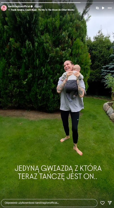Niedługo później prezenterka zamieściła na instagramowej relacji krótkie wideo, na którym widać, jak radośnie pląsa, trzymając synka na rękach.