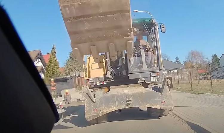 Autorowi nagrania nie spodobał się fakt, że koparka zablokowała pas ruchu, przez co nie mógł on przejechać dalej. Choć na filmie nie słychać dźwięku, to można wyraźnie zauważyć, że pomiędzy nim a pracownikiem budowy doszło do sprzeczki. Gdy tylko wrócił do samochodu, w jego stronę obróciła się łyżka koparki. Na nagraniu widać również, jak operator maszyny podjął próbę "odstraszenia" nią kierującego, a na maskę auta spadły kawałki gruzu.