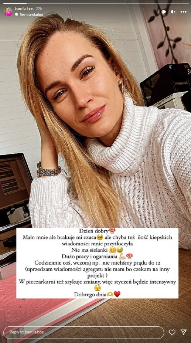Boś z pasją opowiada w sieci zarówno o swojej pracy, jak i o życiu prywatnym. W ostatnim czasie było jej jednak w Internecie trochę mniej, co wzbudziło czujność instagramowych obserwatorów. Teraz rolniczka postanowiła ich uspokoić, nagrywając specjalną wiadomość. W krótkim nagraniu przyznała, iż początek roku jest dla niej bardzo intensywny, co przełożyło się na ograniczenie działalności w social mediach. Wspomniała również o swoich emocjach, które nie zawsze nastrajają ją optymistycznie.