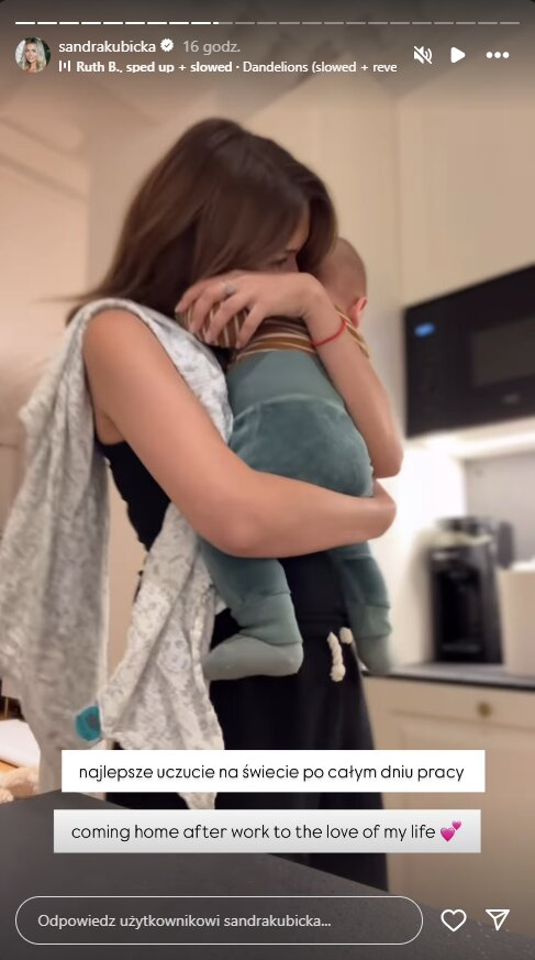 Ostatnio na Instagramie Sandra pokazała bardzo zabiegany dzień. Miała wtedy między innymi sesję zdjęciową, do której musiała się odpowiednio przygotować. Całe przedsięwzięcie chwilę trwało. Po wszystkim wróciła do mieszkania, gdzie czekał już na nią ukochany Leoś. Kobieta opublikowała w sieci wzruszające nagranie, jak przytula się z synkiem. Podpisała je: „najlepsze uczucie na świecie po całym dniu pracy”.