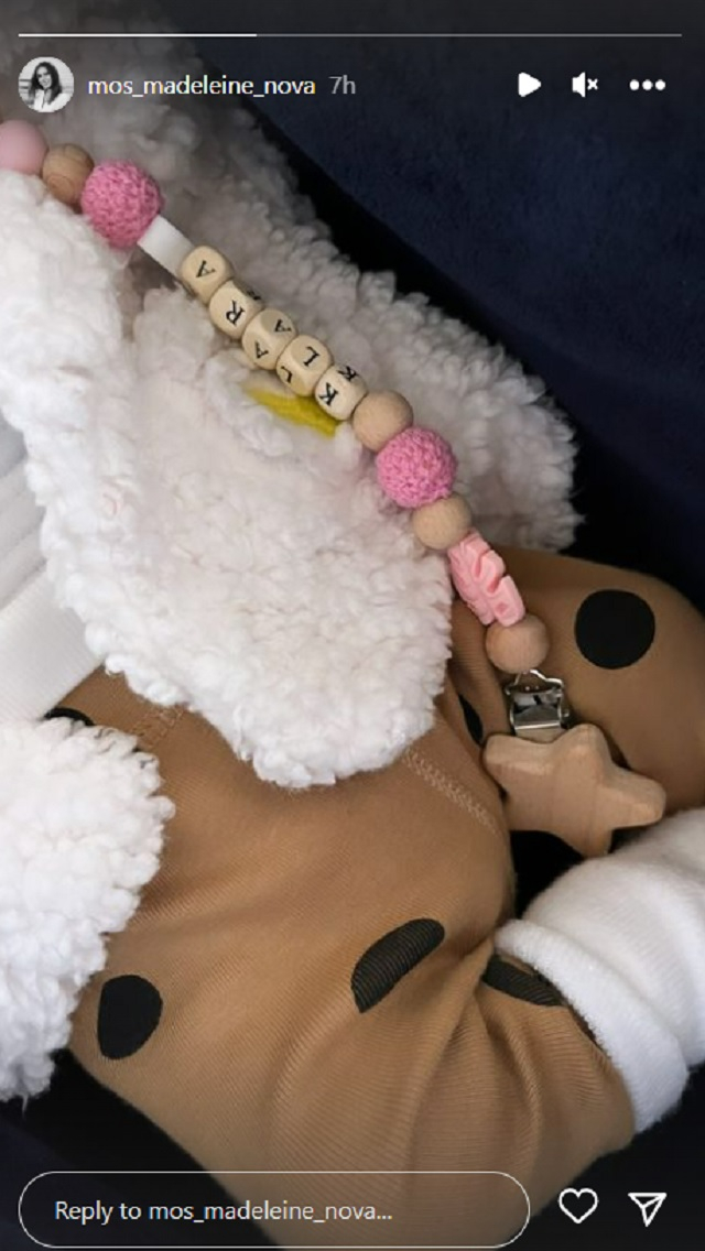 Magdalena na swoim instagramowym profilu zamieściła fotografię, na której doskonale widoczna jest zawieszka do dziecięcego smoczka. Widnieje na niej imię: Klara.