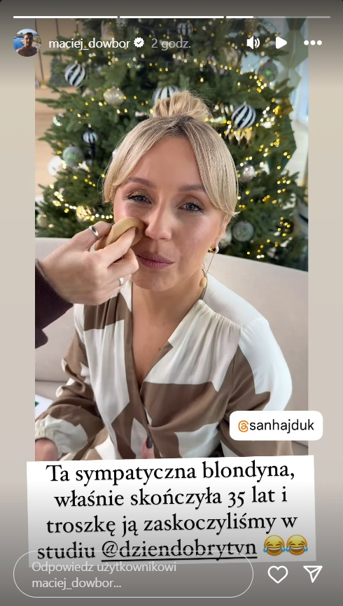 Na Stories na profilu Macieja Dowbora pojawiło się nagranie wykonane podczas poprawki makijażu u zapłakanej Sandry Hajduk-Popińskiej. Na pytanie ekranowego partnera o to, co się stało, odpowiedziała: