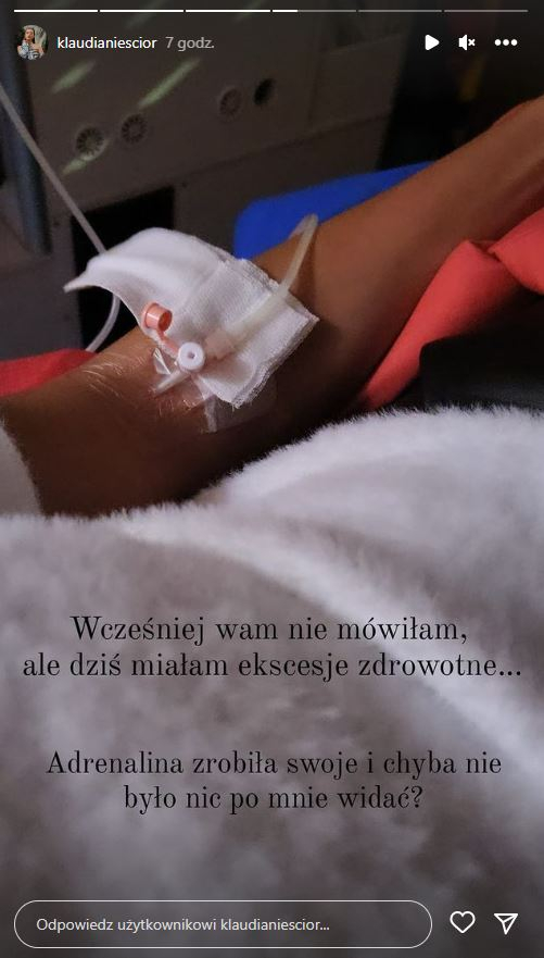 – powiedziała, publikując wcześniej zdjęcie ręki z podpiętą kroplówką.