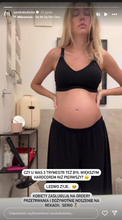 Kobieta weszła w trzeci trymestr. Jak się okazuje jest on dla niej dużo cięższy niż pierwszy. Na instagramowej relacji przyznała, że ledwo żyje: