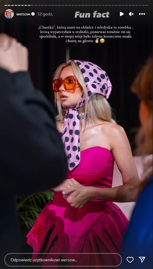 Wersow opublikowała już film, w którym pokazała, jak wyglądał backstage nagrań teledysku. To jednak nie wszystko, co influencerka przygotowała dla swoich fanów. Na jej InstaStory pojawiła się seria ciekawostek zza kulis. Sowa wyjawiła widzom, że w jednej stylizacji wcale nie ma na głowie chusty tylko… torebkę, którą wypatrzyła u stylistki. Sama wymyśliła, aby założyć ją na włosy. W relacji zdradziła też, że klatka, w której pojawia się w kilku ujęciach, zbudowana została dwa dni przed nagraniami.