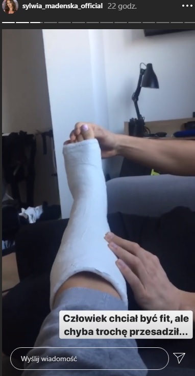 Na swoim InstaStory Sylwia Madeńska najpierw pokazała kadr prezentujący jej nogę w gipsie, by następnie wyjaśnić, jak doszło do tej sytuacji: