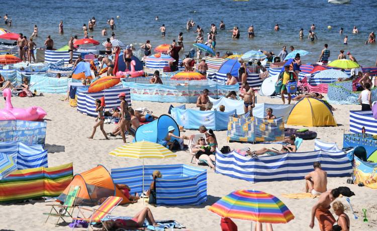 Problemem są nie tylko parawany o wczesnych godzinach porannych. Już w okolicach południa na plaży robi się naprawdę tłoczno. Widać to chociażby na zdjęciach z Władysławowa: