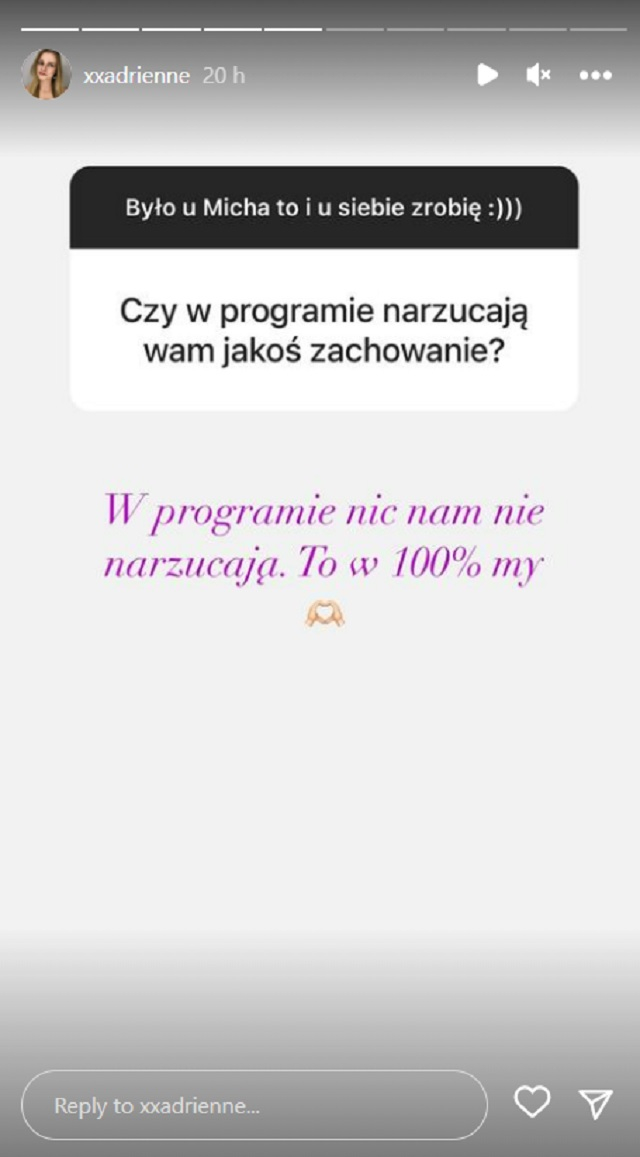 Użytkowników sieci nurtowało również to, czy zachowania osób biorących udział w nagraniach do show są „prawdziwe”, czy może jednak pojawia się ingerencja produkcji. Narzeczona Michała odniosła się również do tej kwestii.
