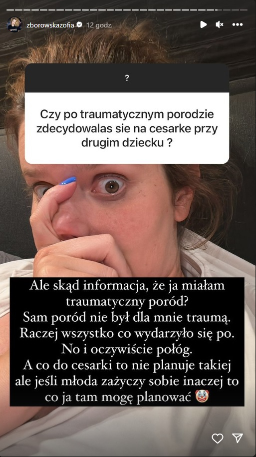 Ale skąd informacja, że ja miałam traumatyczny poród? Sam poród nie był dla mnie traumą. Raczej wszystko co wydarzyło się po. No i oczywiście połóg. A co do cesarki to nie planuję takiej ale jak młoda zażyczy sobie inaczej to co ja tam mogę planować – odpowiedziała.